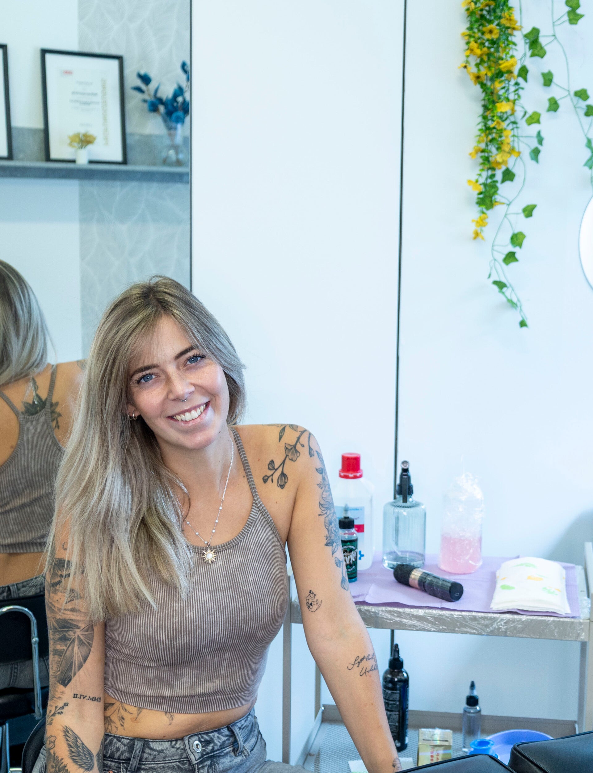Willkommen auf meiner "Über Mich"-Seite! Hier erzähle ich dir, was mich jeden Tag motiviert und warum ich meine Arbeit so sehr liebe. Tauche ein in meine Welt aus feinen Linien, individuellen Motiven und der Kunst, Geschichten auf der Haut zu verewigen.